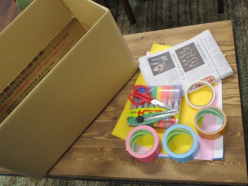 |  | |  | @鬼退治ゲーム じゅんびするもの 段ボール箱 色画用紙 マジック セロハンテープ ガムテープ カッター はさみ 新聞紙