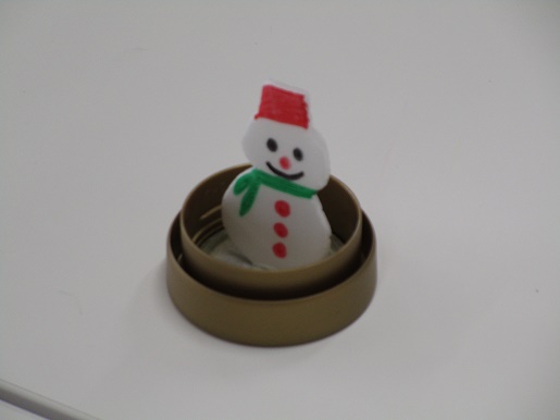 #3 接着剤で蓋側に雪だるまを付ける(しっかり固定させる)