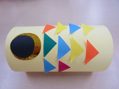 2) 画用紙に両面テープをつけ、丸く筒状にする