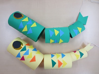 6) できあがったこいのぼりを部屋に飾ってみましょう