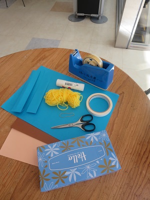 ティッシュペーパーの箱 色画用紙 毛糸 のり はさみ