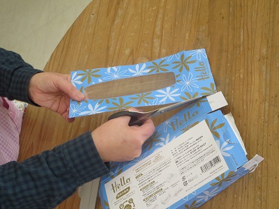 1)ティッシュペーパーの箱の、取り出し口の部分を切り取る