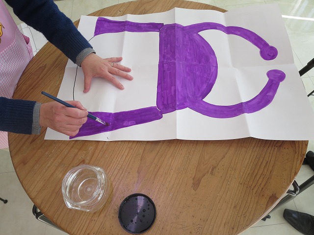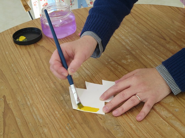 2) 兜の色を塗る(絵具やクレヨンなど使って)