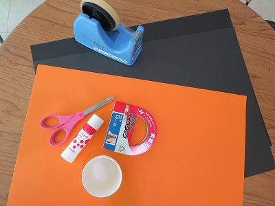 Aかぼちゃのランタン じゅんびするもの 紙コップ 色画用紙(オレンジ色・黒色) のり セロテープ