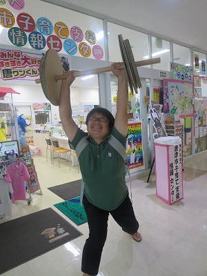2重量挙げ 作り方1 新聞紙を棒状に丸める 2 段ボールを、円形に切る(数個作る) 3 中心に穴を開ける 4 棒に丸く切った段ボールを通す