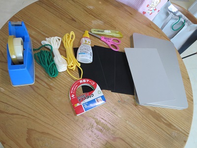 |  | |  | じゅんびするもの マジックテープ(幅広で大きいもの)2〜3枚 両面テープ 丸ひも 厚紙(硬めのしっかりした板) シロップ(メイプルシロップなど)の容器 セロハンテープ はさみ カッター