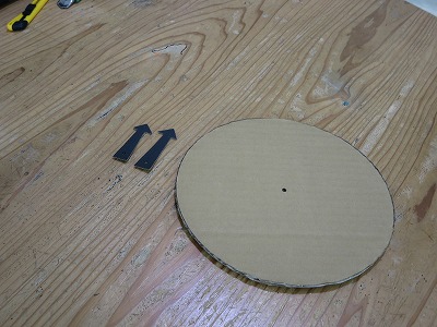 つくりかた(大きい時計) 1)段ボールに、ボールや皿を乗せ丸を描く 2)線に沿ってハサミで丸く切り取る(文字盤) 3)段ボールで、時計の針を描き、切り取る 4)文字盤の中心にきりで穴をあけ、針先の反対側にも穴をあける 5)文字盤に1〜12の数字を書く(書いたものを貼る) 6)針の穴に割ピンを佐志、文字盤の穴に通し固定する (割りピンのかわりに、モールピンにビーズを通して使う)