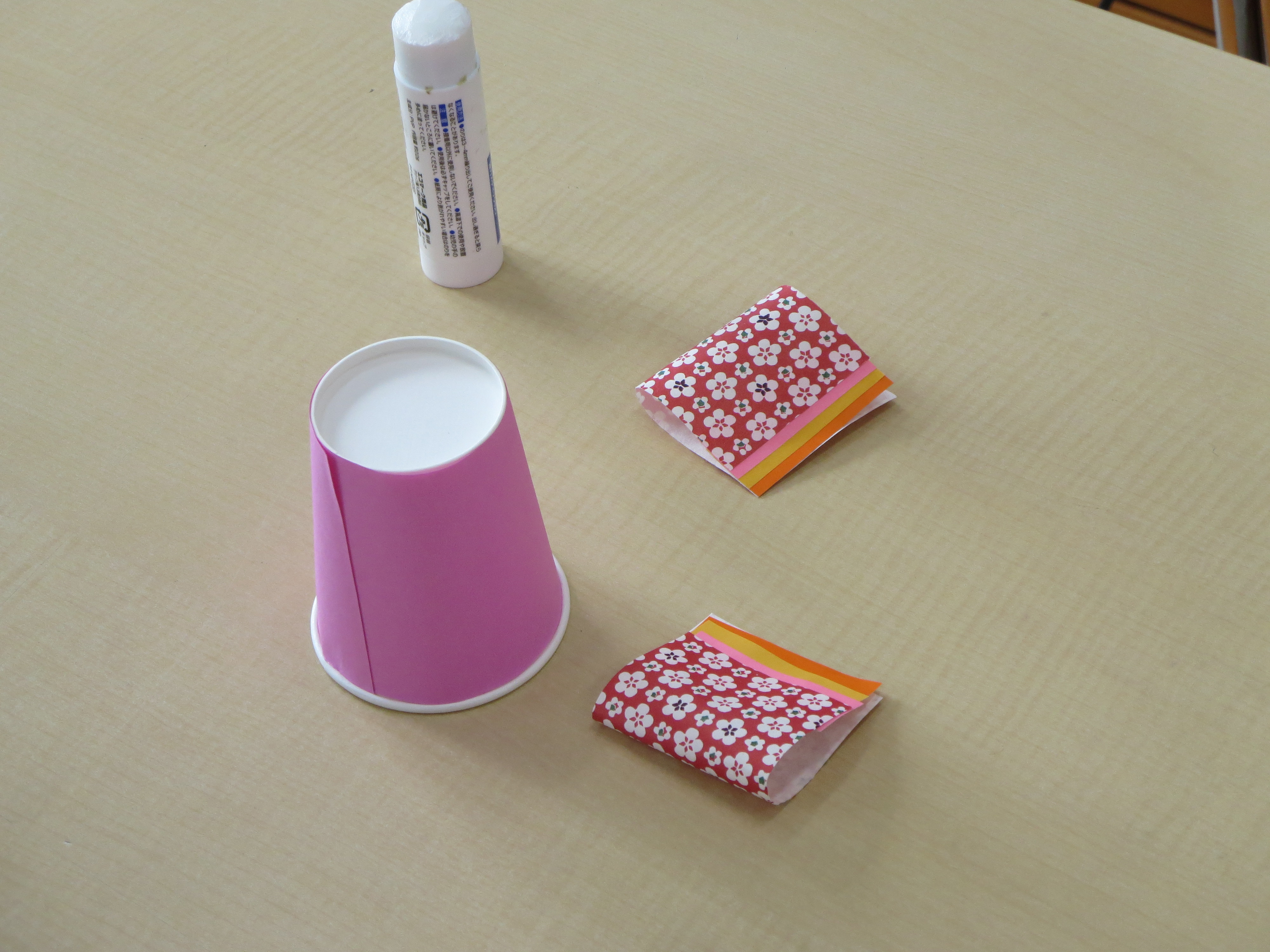 |  | |  | じゅんびするもの 紙コップ 色画用紙 和紙の折り紙 折り紙 のり はさみ マジック 卵ケース ストロー
