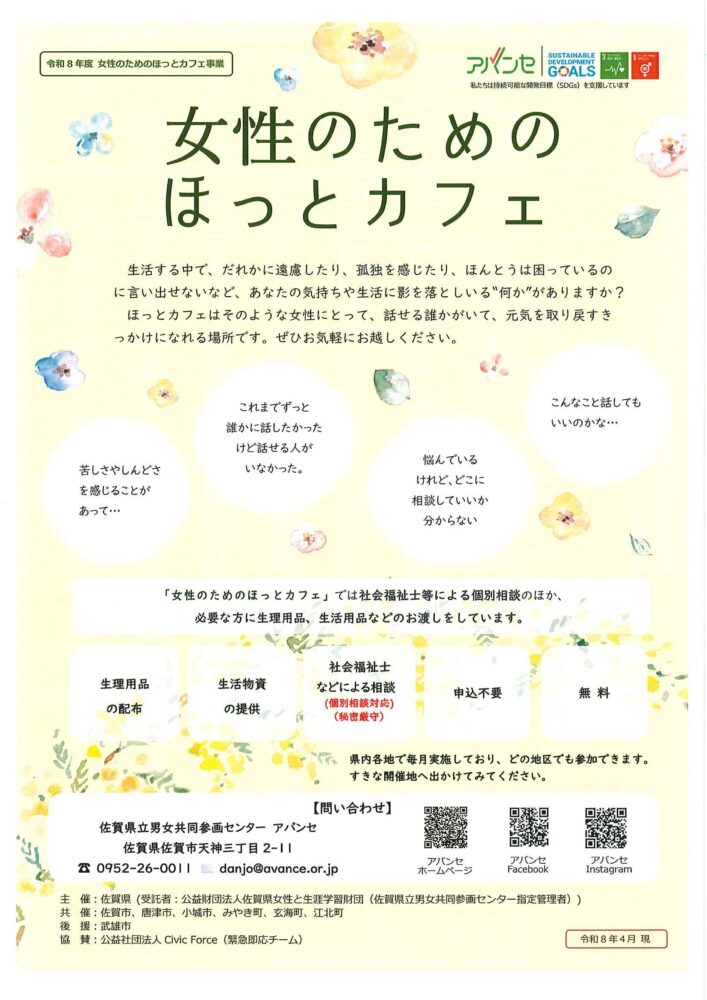 ☆令和8年度『女性のためのほっとカフェ事業』開催のお知らせ☆