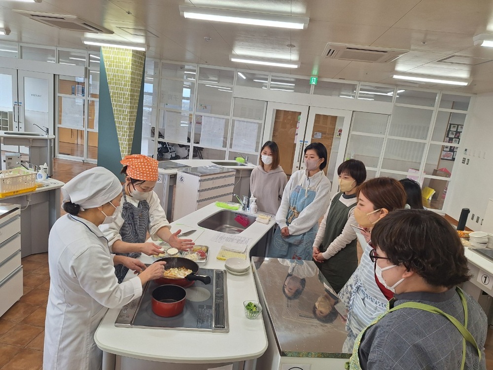 管理栄養士の福山汀子先生に離乳食の基礎を教えていただき、栄養士いわのと先生でデモをした後に実際にママたちに調理してもらいます。