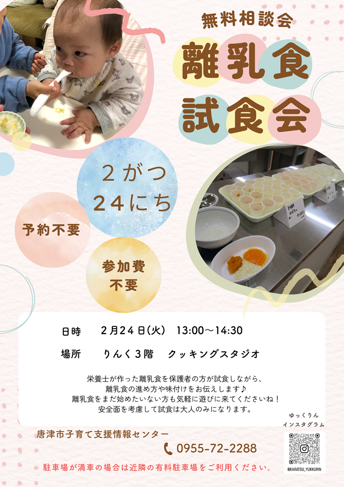 2月24日(火)離乳食の試食会を開催します♪