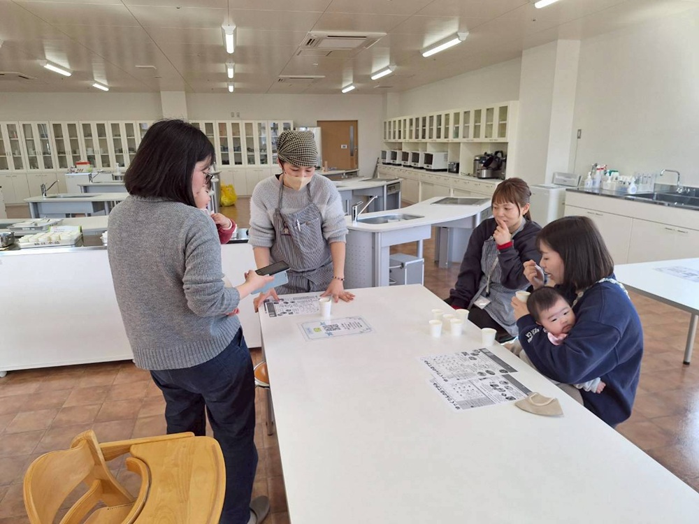 離乳食を保護者の方が味見をして、進め方や味付けを感じていただき