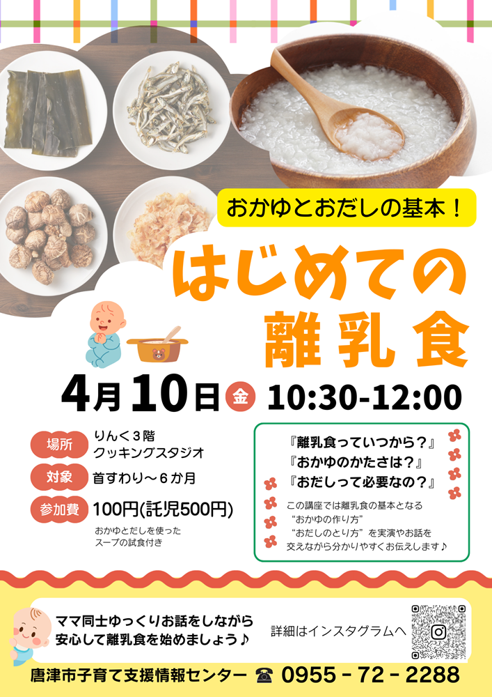 この講座では離乳食の基本となる『おかゆの作り方』『おだしのとり方』の実演やお話を交えながらわかりやすくお伝えします♪