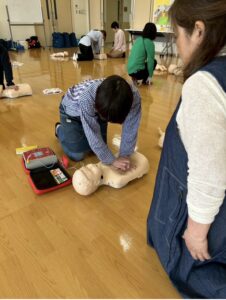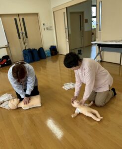 センター全体のスタッフ研修で「日赤幼児救急安全法」の講習を受講いたしました。