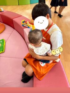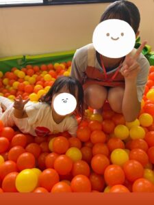 中学生と乳幼児のこどもたちが笑顔で遊んでいると、周りのママたちもすごくうれしそうにされていました。スタッフの我々も支援の原点を思い出しました。