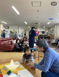 簡単な手遊びや、歌をみんなで歌ったり(今回は♪おにーのぱんつはいいーぱんつー)あっというまの30分でした。