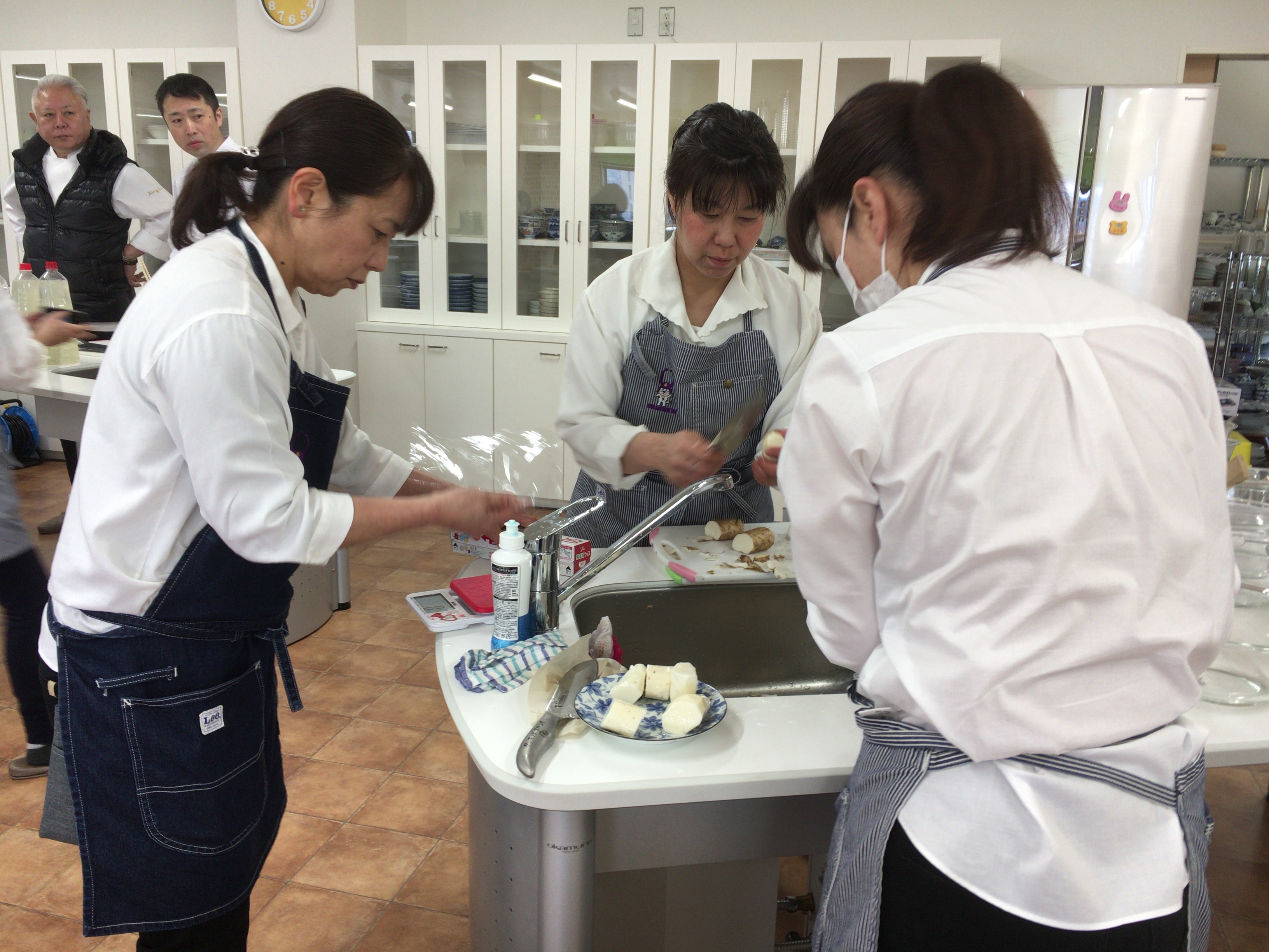 今日はカラツ大学主催のFarmer's School Specialに参加しました。佐賀にある中華名店「シャンリー」の立岡シェフ、めぐみの里代表の宮崎さん、ささき農園の佐々木さんの協力の元、地元の食材を使った根菜炒焼飯とトマトと卵のスープを作りました。