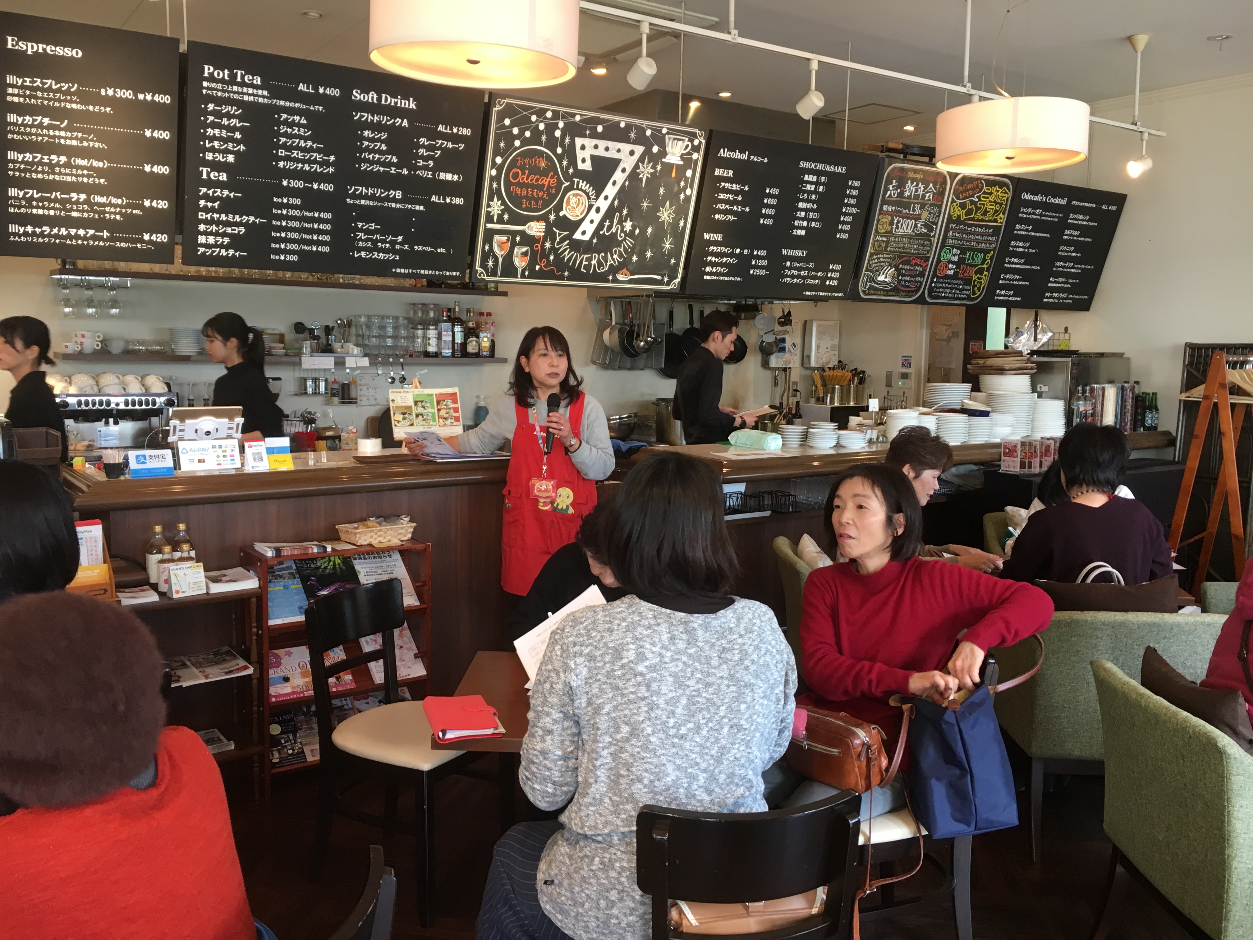 今日はオデカフェでサポーターミーティングです。「H30年度のまとめと更新の手続き」.「カフェアート講座」を行いました。