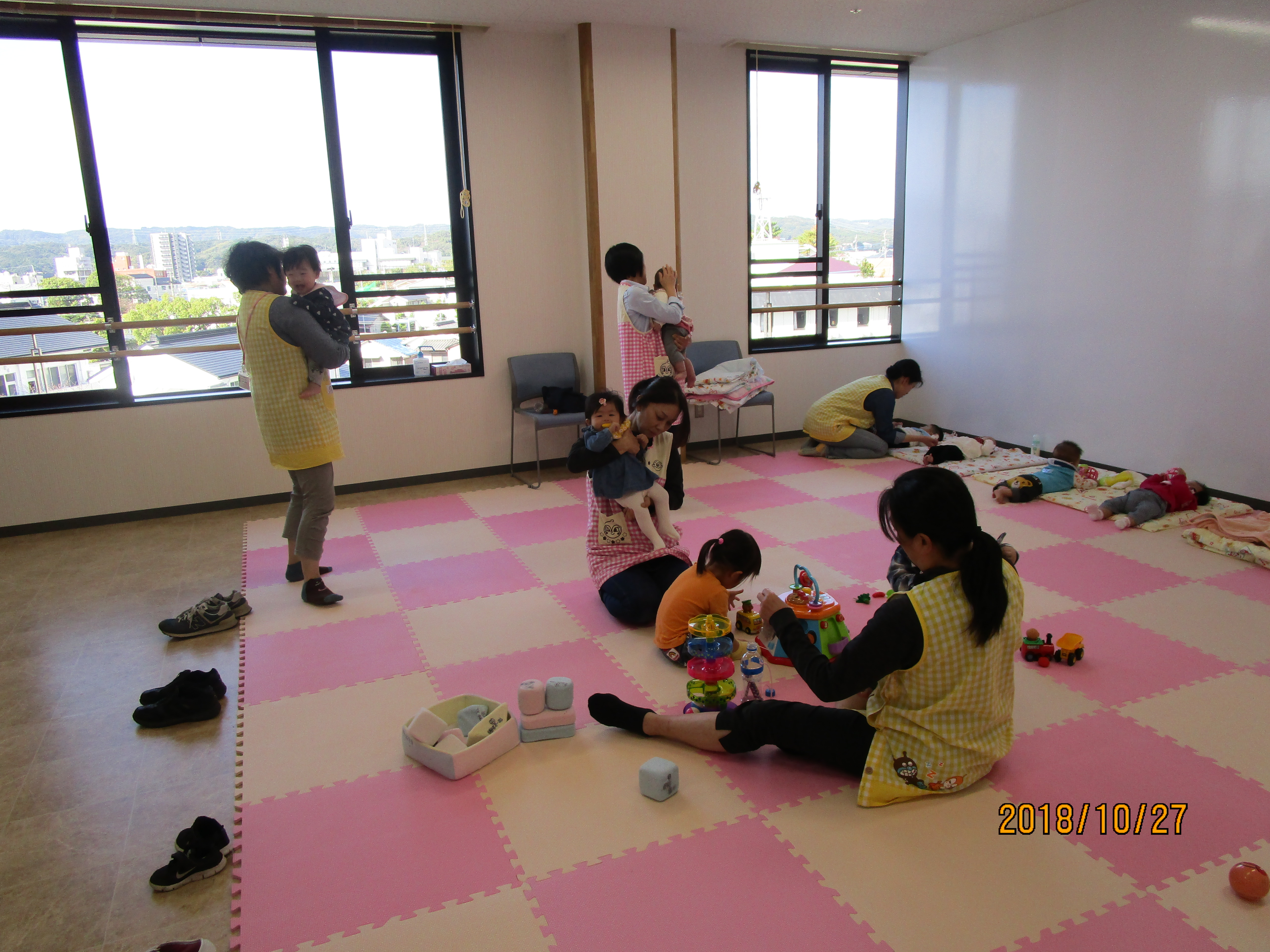 離乳食教室前期の講座の間、お子様たちを集団託児で見守りました。