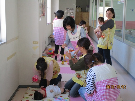 親子スイミングで集団託児を行いました。