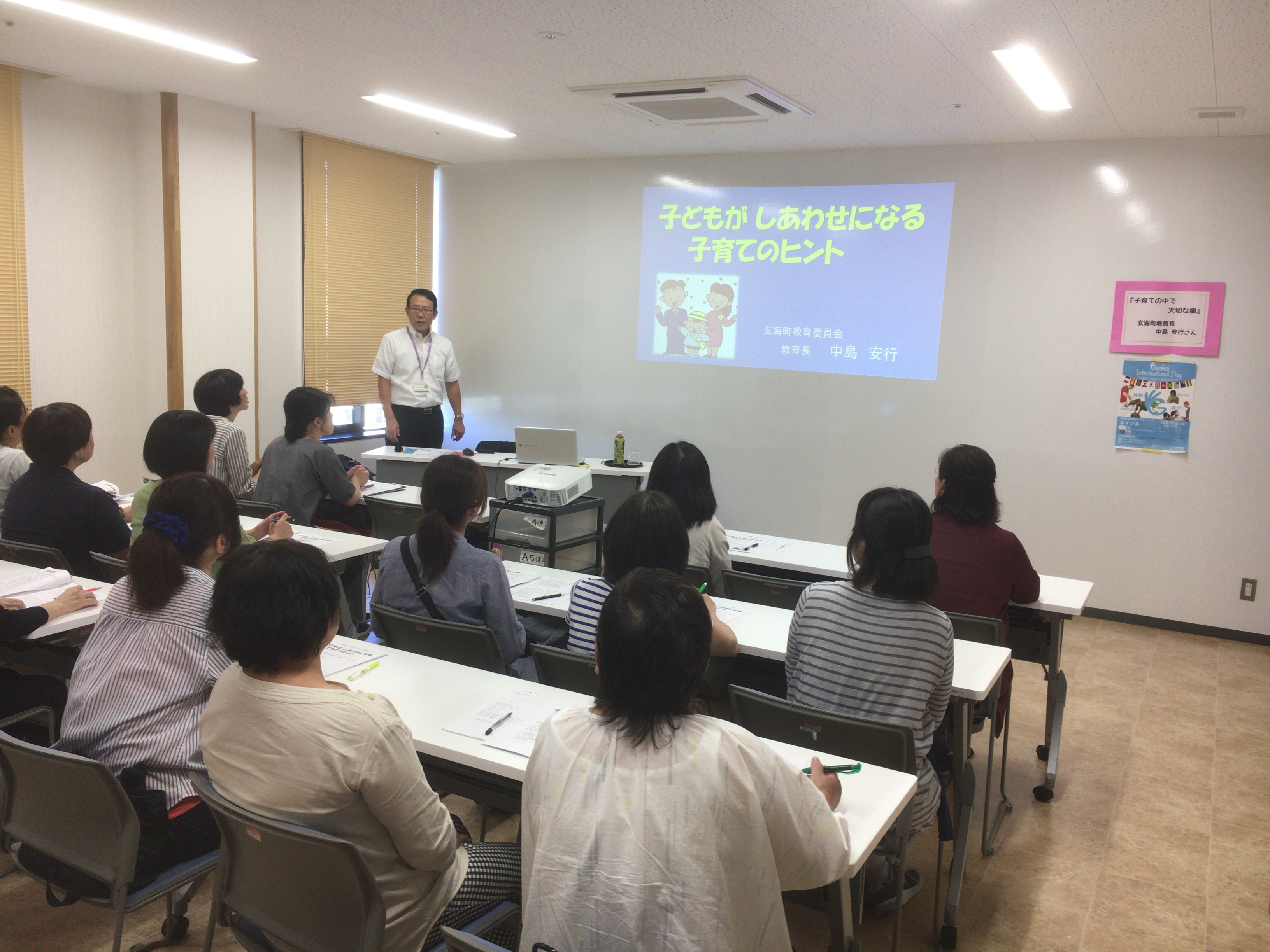 今日はラビットくんサポーターのミーティングです。玄海町教育長 中島安行さんの講話が行われてます。