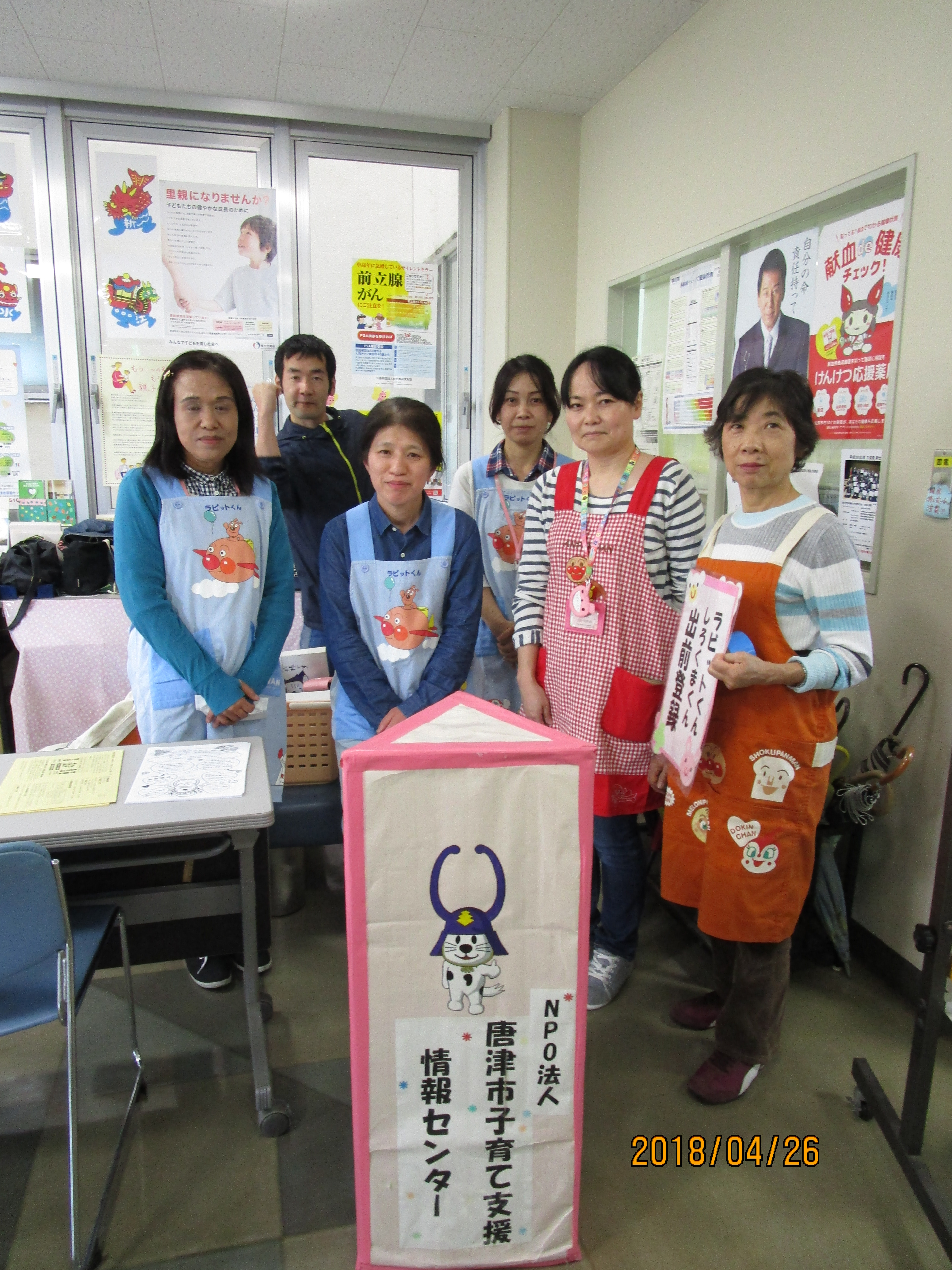 平成30年度も唐津市各保健センターでの1才6か月健診時におじゃまして、ラビットくん・しろくまくん登録活動とセンター事業の周知活動をさせていただきます。サポーターさんのご協力もあり、今日も5件7人の登録がありました。ありがとうございました。