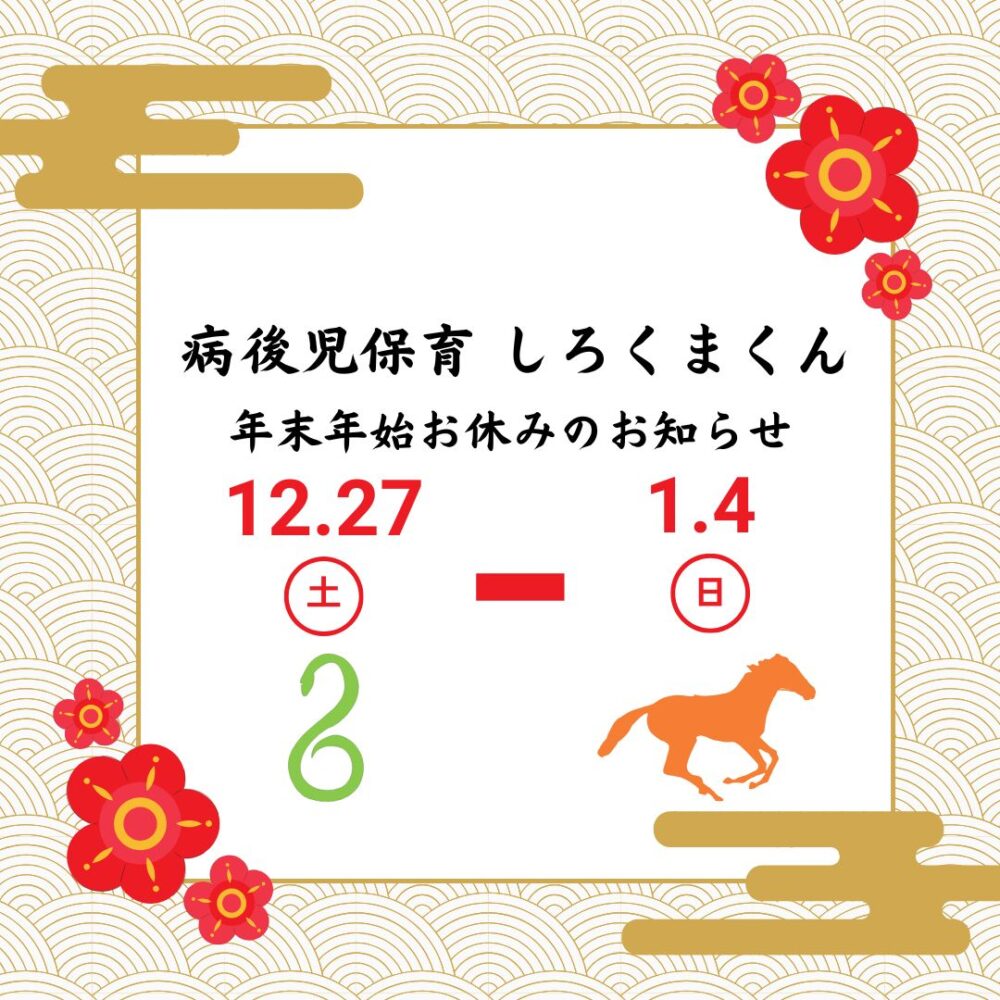 12月26日(金)までの活動で12月27日(土)からお休みとなります。