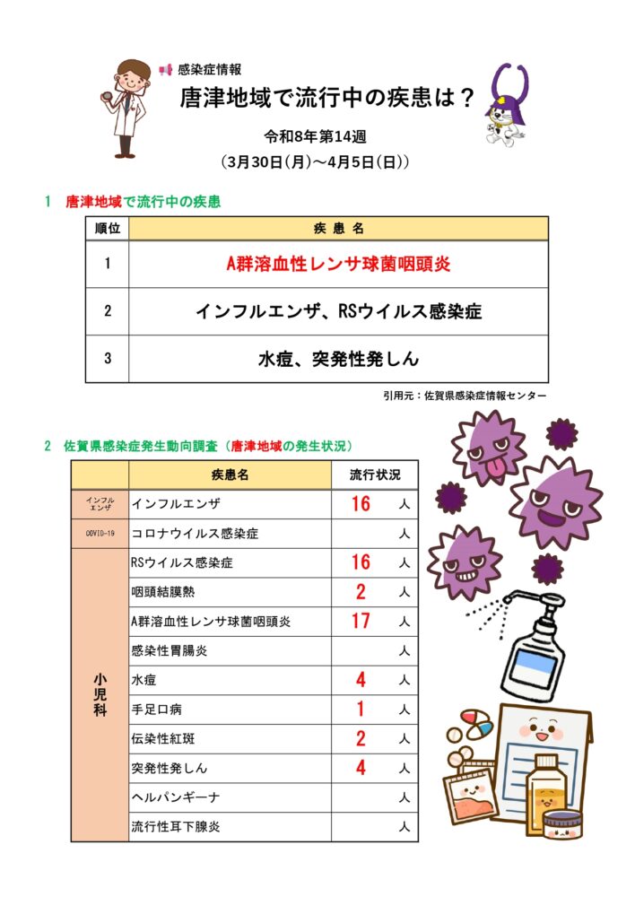 RSウイルス感染症や水痘が増えています。