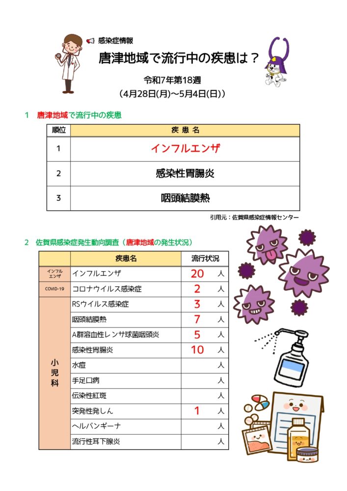 唐津地域の最新の感染症情報(第18週)です。